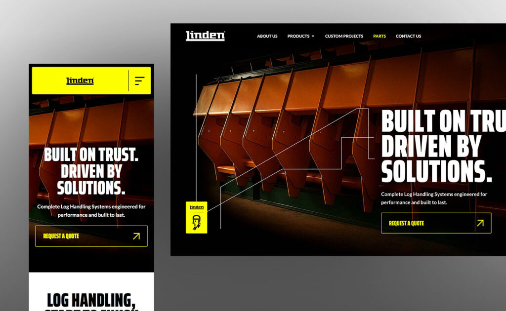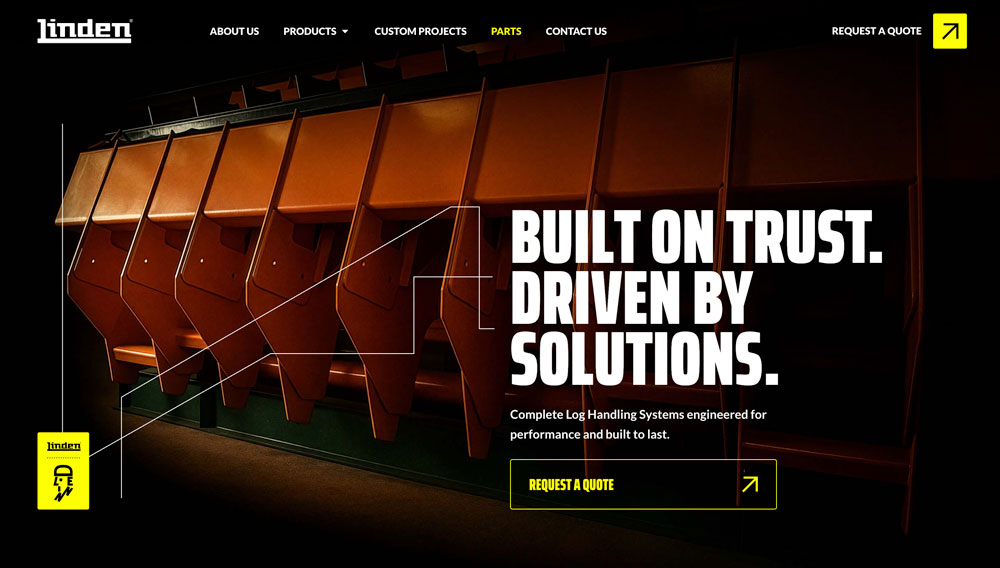 Corporate website featuring a log handling equipment catalog